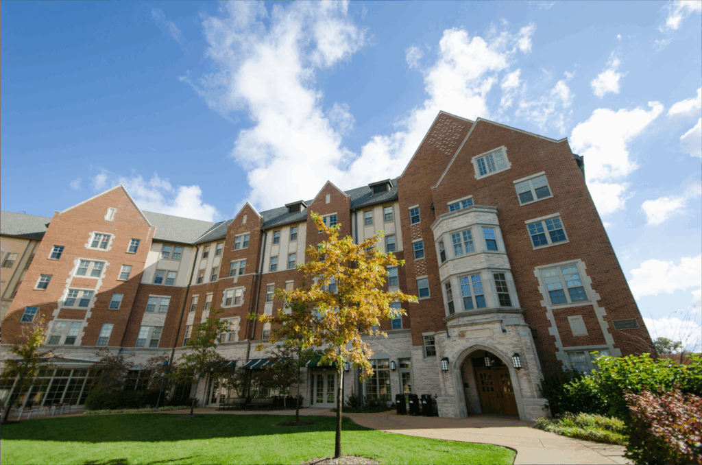 Thomas Eliot B House contains modern four-person single suites, with each suite having a shared living space and bathroom. Each student will have a: XL twin bed frame and accompanying mattress; a three-drawer dresser; and a computer desk and chair. A shower curtain is provided for the bathroom and the suite is carpeted. In the shared living space there is a couch, couch chair, coffee and side table provided.
